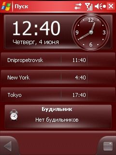 (+): Простой и лаконичный интерфейс, большие кнопки - удобно использовать без стилуса, полностью русскоязычное меню. Есть возможность просмотра погоды, с большим списком городов.