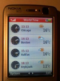 После исчезновения примечательной заставки, нам предлагается сделать выбор - загрузить данные о погоде с сервиса Yahoo! Weather, либо же просто воспользоваться просмотрщиком мирового времени: