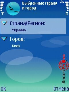 Интерфейс главного меню программы стильно оформлен и функционален. Начнем его рассмотрение с низу вверх - сначала мы можем выбрать страну и город, где мы находимся. К сожалению, из Украинских городов представлены лишь четыре: