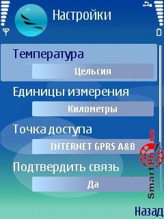 • Настройки - с помощью этой функции мы можем работать с основными настройками утилиты, которые позволяют сменить параметры единиц отображения температур, параметры единиц измерения расстояний, параметры точки доступа к сети интернет, вкл./выкл. параметр подтверждения связи, вкл./выкл. автоматическое обновление данных и задать его параметры: