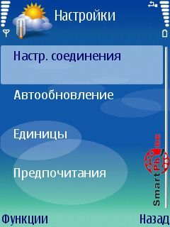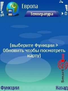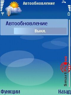 Обновить - с помощью этой функции мы можем обновлять информацию о погодных условиях, путем выхода в сеть интернет.