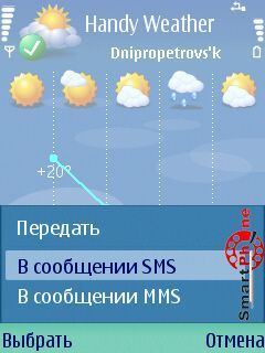 Отослать прогноз - с помощью этой функции мы можем отсылать прогнозы нашим близким и знакомым, посредством передачи СМС, MMC сообщений: