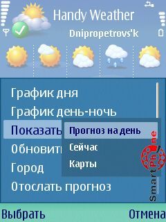 Программа Handy Weather представляет собой утилиту, с помощью которой Вы сможете получить самый полный и актуальный прогноз погоды на 5 дней вперед, в любом месте и в любое время, от ведущего международного метеорологического агентства Intellicast. Приложение имеет следующий ряд особенностей: пятидневный прогноз погоды, подробный дневной