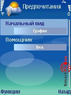 Интерфейс главного меню программы представляет собой график, на котором отображены: кривые дневной и ночной температур, над днями недели находятся данные о осадках, либо же о солнечной погоде.