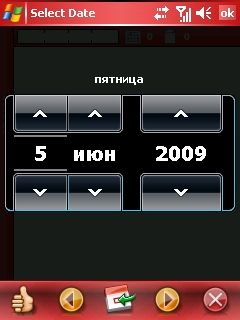 Вторая и четвертая кнопка отвечают за прокрутку календаря на день в перед или назад. Кнопка расположенная по средине, открывает окно с настройкой даты, в которой выбирается: число, месяц и год.