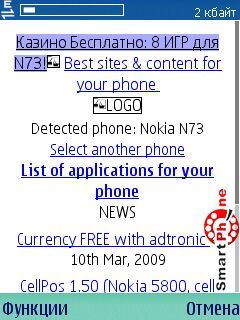 Помощь на WAP - с помощью этой функции мы можем выйти в сеть интернет и перейти на сайт разработчика: