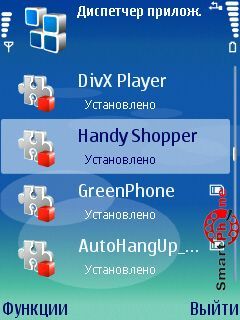 Внизу главного меню программы присутствуют два пункта: слева пункт Функции (содержит в себе необходимые функции для оптимизации работы с утилитой), справа находится пункт Выйти (с помощью данного пункта мы можем выйти из программы в главное меню нашего смартфона).