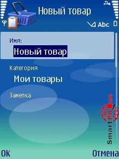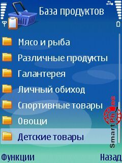 простой русскоязычный интерфейс программы; возможность создать свою пользовательскую базу продуктов/товаром, если таковых нету в предоставляемой базе; возможность отправить созданный список покупок на номер в виде смс; достаточно объемную база продуктов/товаров программы.