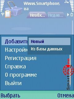 И напоследок рассмотрим систематику добавления новых покупок в список. Для этого нам необходимо находясь в списке расходов, выбрать пункт Функции, а в нем функцию Добавить:. Функция Добавить имеет два подпункта Новый и Из базы данных. Первый подпункт позволяет вводить те критерии расходов, которых нет в базе данных, а второй выбирать данные из списка имеющихся критериев: