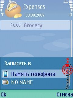 • Записать расход - с помощью этой функции мы можем сохранить информацию о наших расходах в память смартфона, либо на карту памяти телефона: