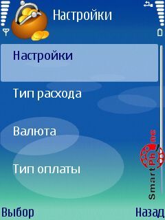 Интерфейс главного меню программы представлен пользователю списком дневника расходов. Навигацию по этому списку мы можем осуществлять с помощью джойстика нашего смартфона.
