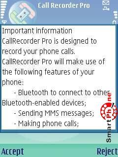 нажатия пункта Accept, либо отклонить данные, выбрав пункт Reject. В последнем случае мы безболезненно переходим в главное меню нашего смартфона: