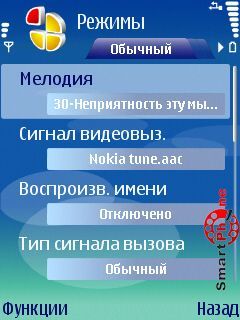 Profiles - с помощью этого операционного пункта мы можем "привязывать" видеофайл к определенному профилю. Систематика привязки очень проста - выбираем нужный профиль из списка, заходим в его настройки и в списке пункта Мелодии выбираем нужный нам видеофайл: