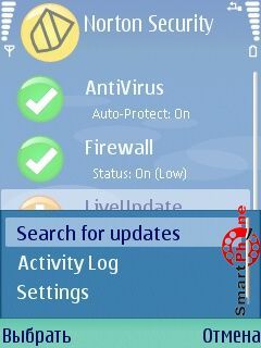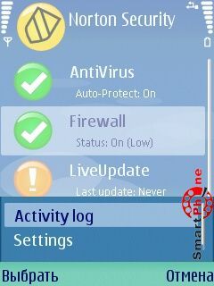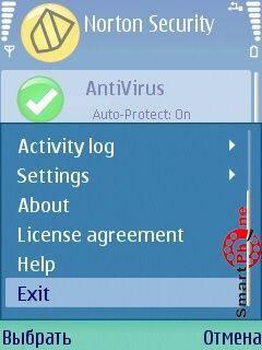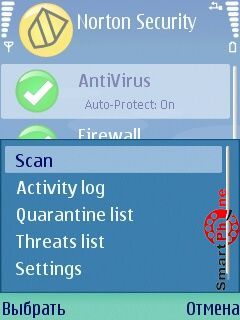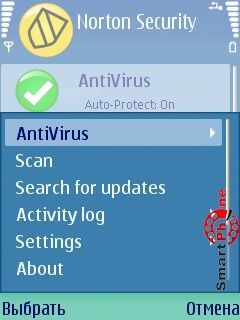 Norton Smartphone Securiti - интерфейс главного меню программы прост и представлен пользователю списком основных операционных пунктов: