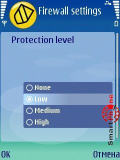 пространства смартфона; работа в режиме реального времени; настройки программы позволяют установить уровень защиты и автоматический запуск антивирусного монитора.