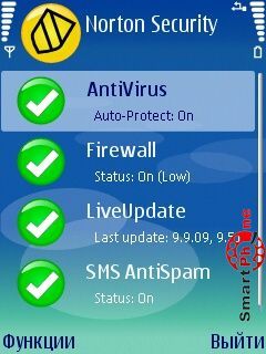 Начнем с Norton Smartphone Securiti- в данной программе функционально содержащий пункт называется Функции, и содержит следующий набор функций: