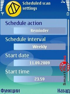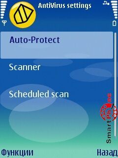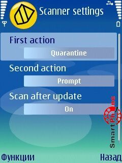 нашего смартфона (Скан) и проведения обновления антивирусных баз программы (Обновить).