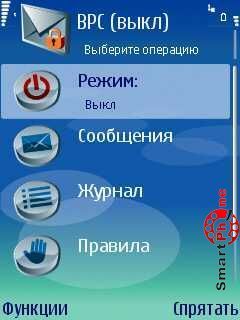 Best Private Conversation - интерфейс главного меню программы представлен нам списком основных операционных пунктов, навигативное перемещение между которыми мы можем осуществлять с помощью джойстика нашего смартфона. Хотелось бы также заметить, что внизу главного меню программы присутствуют два пункта: слева пункт Функции (содержит в себе все необходимые функции для адекватной работы с утилитой), справа находится пункт Спрятать (с помощью данного пункта мы можем свернуть программу и перейти в главное меню нашего смартфона):