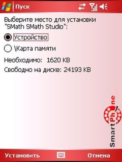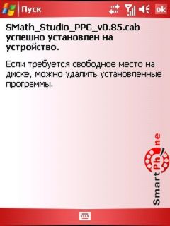 Для того чтобы установить приложение SMath Studio необходимо загрузить дистрибутив с сайта разработчика. Если это cab файл, то перенести в память устройства, если это exe файл, то подсоединить устройство к ПК при помощи дата кабеля и запустить установочный файл при этом следовать инструкциям на экране.