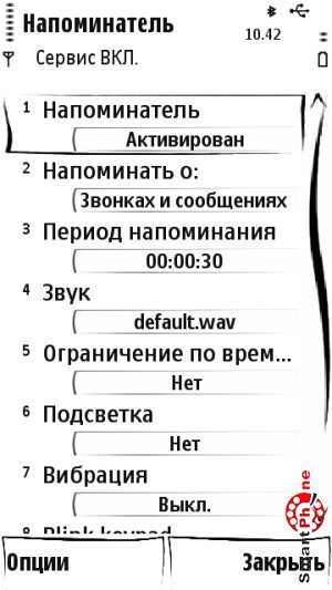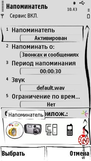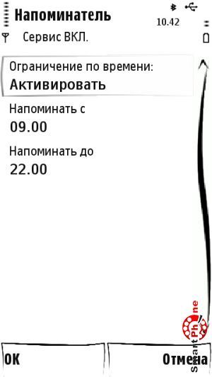 можно задать соответствующее ограничение времени); возможность выбора типа напоминания.