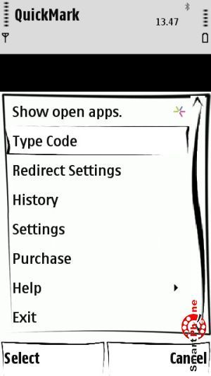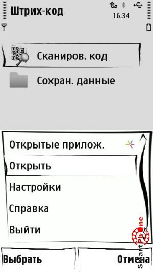 Nokia Barcode Reader - интерфейс главного меню программы представлен