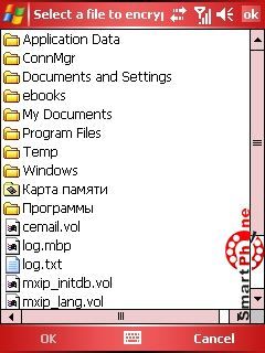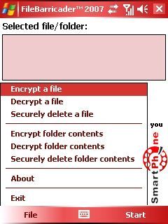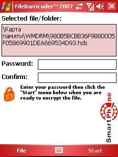 FileBarricader™ 2007 Mobile программа предназначенная для защиты файлов и документов. Шифрует любые файлы, к которым можно получить доступ. Алгоритм шифрования AES, длина ключа 256 бит. При своей надежности программа имеет простой в управлении интерфейс.