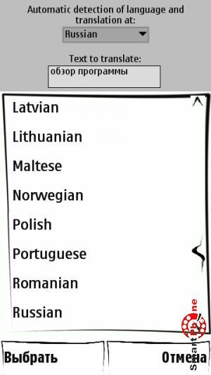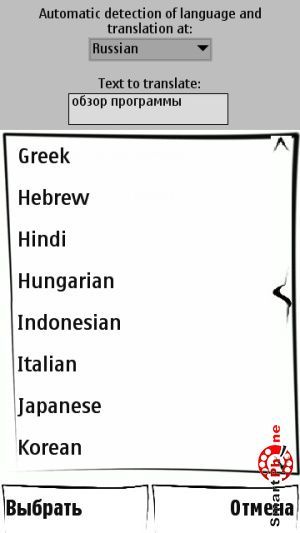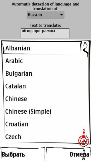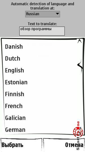 процесс перевода. Вверху главного меню программы находится меню выбора языка перевода. Благо, языков для перевода более чем предостаточно: