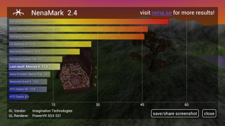 Обратите внимание, в тестах смарфтон обходит такие модели, как Lg Optimus 2X и Samsung Galaxy Nexus, что весьма неплохой показатель. Стоить отметить, что у аналогов на этой же аппаратной платформе с меньшим разрешением дисплея производительность будет больше. В модели NetTAB Mercury X она целенаправленно израсходуется видеоадаптером на прорисовку картинки в разрешении 720х1280, что является его ключевым преимуществом.