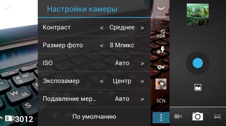 Настройки основной камеры позволяют делать HDR фото, выбирать баланс белого, цветовые эффекты и режимы съемки, подключать геотеги, установливать ISO, делать серийную съемку, корректировать параметры экспозиции, менять размер снимка и другое. Максимальное разрешение фото составляет 3264x2448. Фронтальная камера на 2 МП, что очень даже неплохо.