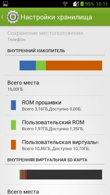 Официально заявлено о 16 ГБ встроенной памяти. Однако на практике пользователь получает возможность работать с почти 11 ГБ.