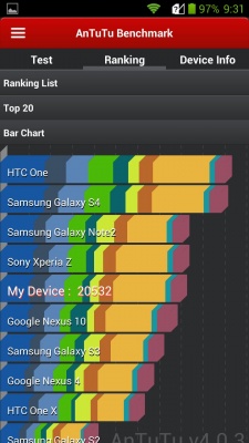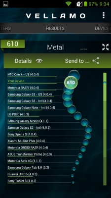 «Внутри», как уже упоминалось, Snapdragon S4 Pro с 4-ядерным процессором Krait, а также 2 ГБ оперативной памяти и графика Adreno 320.
