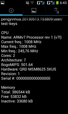 Основной вычислительный компонент системы - 2-ядерный процессор Qualcomm MSM8625 на 1 ГГц, в дополнение к которому идет графика Adreno 203. Если учесть, что оперативной памяти всего 512 МБ, может показаться, что ни о каких мультимедийных возможностях устройства с экраном 5,8 и вовсе говорить не стоит. Однако попробуем вас порадовать — аркадные игрушки, логические и даже некоторые нетребовательные симуляторы охотно запускаются, хоть и на пределе своих графических возможностей.