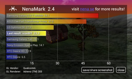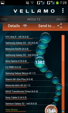 Из них видно, что аппарат по скорости выполнения вычислительных операций находится на уровне флагмана от Samsung двухлетней давности (Galaxy SII). Лишь в графике есть небольшое отставание, но тут важную роль играют уже размеры дисплея. А он у Mercury S на 1,5 дюйма больше!