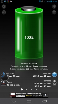 Тестирование автономности было проведено при помощи утилиты «Батарея HD». Ниже результаты.