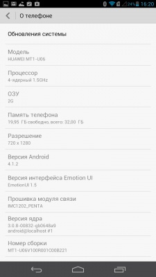 Пользователь получит Huawei Ascend Mate с Android 4.1.2 «из коробки». Об обновлении до более актуального релиза на данный момент нет никакой информации.