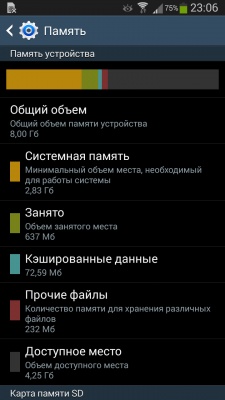 Заявленный объем встроенной памяти 8 ГБ, хотя на практике пользователю изначально доступно около 5 ГБ.
