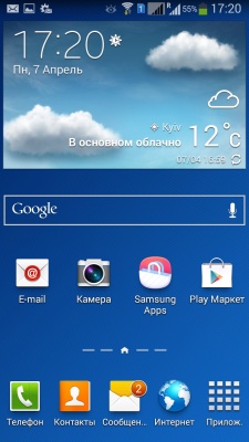 Поверх оси установлена фирменная оболочка Samsung TouchWiz. Изменений в сравнении с интерфейсом, реализованным в предыдущих версиях смартфонов этого производителя, здесь нет.