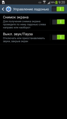 Функция «Управление ладонью» позволяет сделать скриншот экрана простым проведением по панели ребром ладони. Кроме того, можно отключить или приостановить звучание, просто закрыв панель ладошкой.
