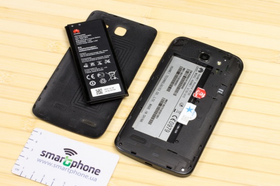 Под панелькой также без сюрпризов – батарея, слот для MicroSD-карты и два для симок - для micro-SIM и обычной полноразмерной.