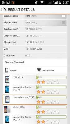 В итоге имеем почти 20 тысяч «попугаев» в AnTuTu и производительность достаточную для плавной работы всех приложений, проигрывания Full HD видео и даже воспроизведения большинства современных мобильных игр, в частности той же Real Racing 3.