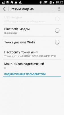 Раздавать интернет-трафик Huawei Ascend G730 способен несколькими способами: организацией точки доступа Wi-Fi, через Bluetooth и по USB-кабелю.