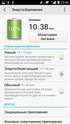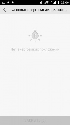 Предусмотренный здесь режим энергосбережения постоянно вычисляет самых ярых «поглотителей» энергии и предлагает пользователю выгрузить их из памяти. Всего режимов экономии заряда три: обычный, умный и энергосберегающий.