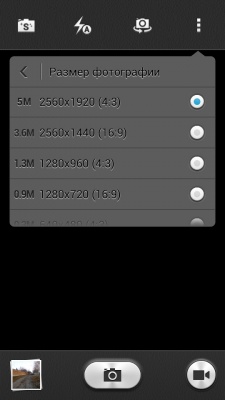 Фотомодуль дополнен автофокусом, возможностью ручного выбора точки фокусировки и цифровым зумом. В настройках предусмотрено большое количество режимов съемки: «Обычный», «Умный», «Украшение», «HDR», «Панорама», «Эффект», «Мультиракурс», а также «Аудиозаметка» и «Экспозамер».
