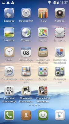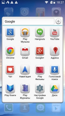 Все приложения находятся на рабочих столах, количество которых может варьироваться от 1 до 9, и могут быть рассортированы по папкам. Среди предустановленных утилит отмечу офисный пакет Kingsoft Office, программу оптимизации памяти и большой пакет приложений от Google.
