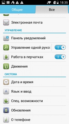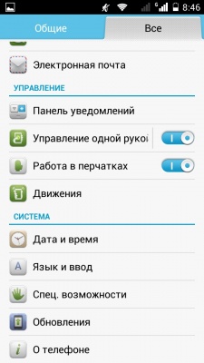 Сенсорный слой обрабатывает до 10 одновременных касаний. Чувствительность хорошая. Любопытно, что девайс поддерживает технологию управления тачскрином в перчатках, что зачастую характерно лишь для смартфонов более высокого ценового диапазона. Активировав данную опцию в меню настроек, у меня пропала необходимость вытаскивать руки из теплых варежек в случае, когда нужно ответить на звонок или сменить проигрываемый трек.
