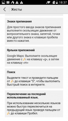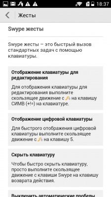 Главный плюс аппарата, на мой взгляд, большой дисплей – подходящая диагональ для удобного WEB-серфинга, чтения книг, игр и просмотра фильмов. Кроме того, он привлекает внимание поддержкой двух SIM-карт, неплохим звучанием и шустрой работой, а также программными «фишками», недоступными большинству его конкурентов: режимы «Управления одной рукой» и «Управления в перчатках», поддержка управления жестами, а также предустановленная клавиатура Swype.