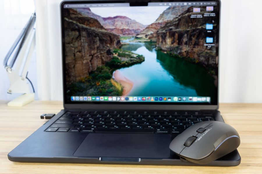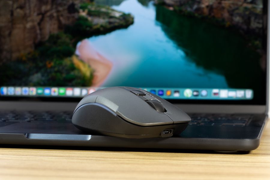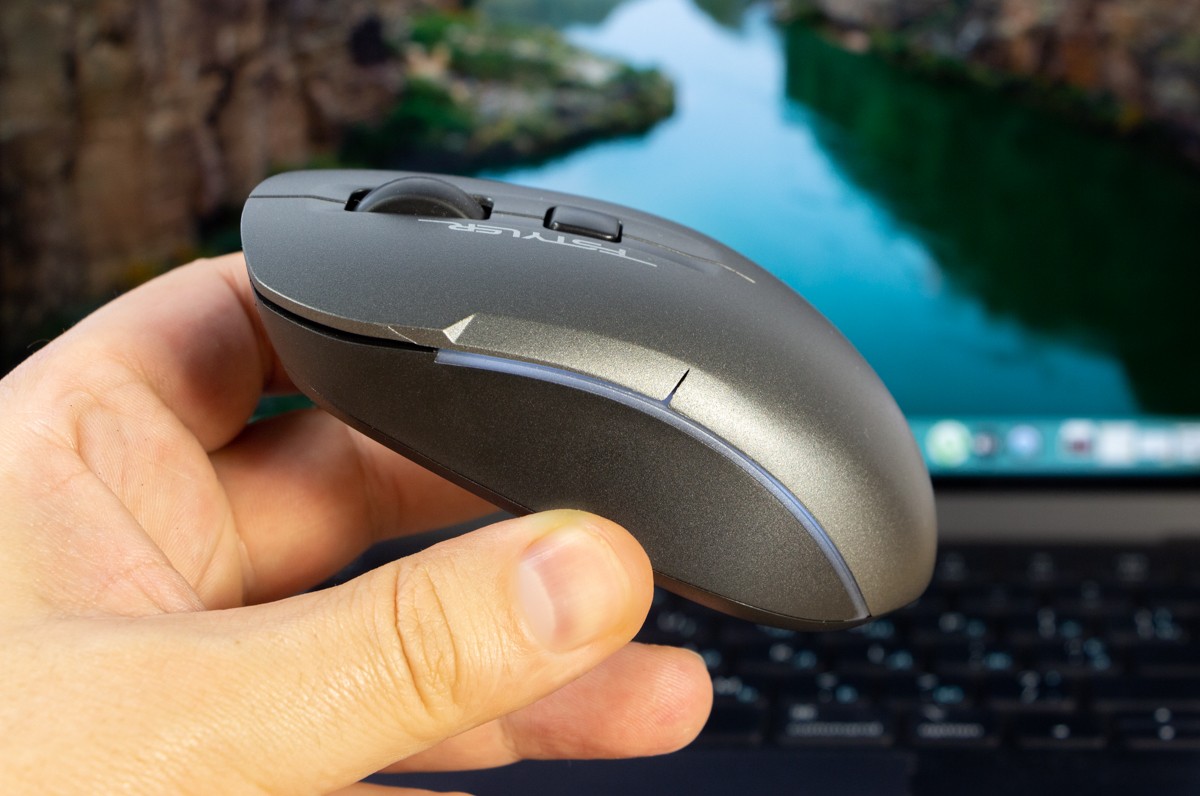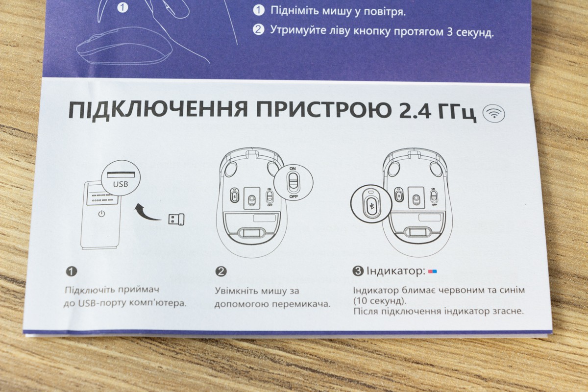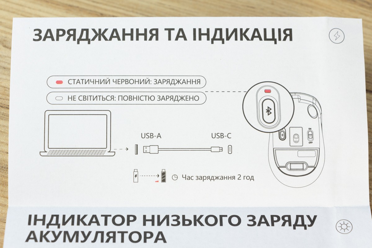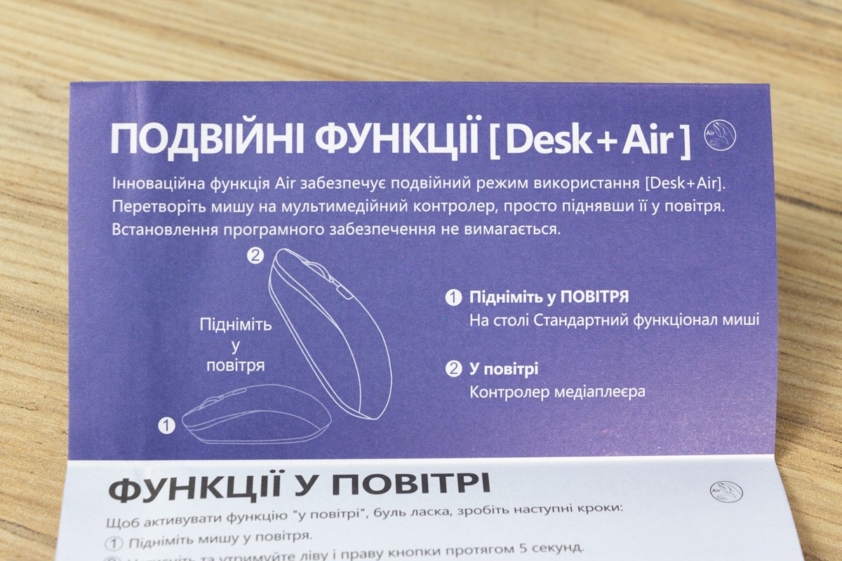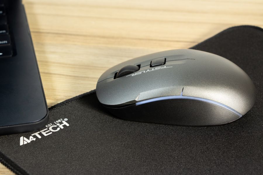Огляд A4Tech FB26CS Air2: бездротова миша з фунцією Desk+Air з підключенням по Bluetooth і 2.4 ГГцA4Tech FB26CS Air2 - новинка серед бездротових миш середнього цінового сегмента в лінійці Fstyler, яка поєднує в собі завнішню простоту, комфорт у використанні та якісні матеріали і збірку. Мишу можна підключити до 3-х пристроїв одночасно, вона доступна по ціні та вміє трішки “літати”. Що це значить та наскільки FB26CS Air2 хороша для повсякденного користування розповідаю в огляді. КомплектаціяЗ напівпрозорої коробки при розпакуванні власник дістане мишу, інструкцію українською мовою, кабель USB Type-C, USB-адаптер 2,4 ГГц та перехідник USB-A на Type-C для адаптера. Останній іноді може бути потрібен власникам компактних ноутбуків. Дизайн та КорпусМиша A4Tech FB26CS Air2 зовні виглядає простою та ненав’язливою в плані дизайні. Яскраві елементи та написи на корпусі відсутні. Миша отримала симетричний дизайн, що робить її зручною для користування як правою, так і лівою рукою. Корпус виготовлений з чорного та сірого матового пластику, а між ними на боках додано вставки з прозорого. Матеріал стійкий до забруднень, а за два тижні активного користування не назбирав на собі подряпин та потертостей. Під прозорим пластиком захована біла підсвітка. Її можна активувати або вимкнути, утримуючи кнопку DPI протягом трьох секунд. Підсвітка корисна при роботі в умовах недостатнього освітлення. Окрім двох основних кнопок та коліщатка прокрутки, зверху на корпусі передбачена невелика чорна пластикова кнопка зміни DPI. Пара великих “робочих” кнопок майже безшумні. Це додає комфорту та дозволяє працювати з пристроєм навіть у спальних кімнатах. Коліщатко широке та прогумоване зверху. Воно невеликого діаметра, але в користуванні зручне. Між кнопками правої і лівої клавіш є зручне заглиблення, що дозволяє швидко наосліп “знайти” коліщатко та кнопку зміни DPI. На нижній частині миші розташований перемикач увімкнення/вимкнення, кнопка для вибору режиму з’єднання та слот для зберігання адаптера. На передній частині миші з самого низу по центру знаходиться порт USB Type-C для заряджання. Навіть попри те що одного разу прийшлось користуватись мишею з підключеним кабелем (пристрій підзаряджався), кабель, який “лежав” на килимку, не заважав роботі. Окремо відзначу, що відсутність дроту забезпечує високу мобільність, що робить мишу ідеальною для роботи з планшетом або ноутбуком, в тому числі і з одночасним підключенням до цих двох пристроїв. Модель FB26CS Air2 це вміє, причому одночасно може бути підключена до 3-х пристроїв. Режими роботи Миша підтримує два способи підключення – через ресивер або Bluetooth. По-перше, це дозволяє легко перемикатися між пристроями, якщо працюєте з декількома одночасно. По-друге, підвищує мобільність, бо Bluetooth зараз є майже в будь-якому ноутбуці та у всіх планшетах. Зміна режимів підключення відбувається швидко. Детально процес розписаний в інструкції. Щоб вибрати радіоканал, потрібно кілька разів натиснути кнопку вибору з'єднання, розташовану на нижній частині миші, доки індикатор не почне по черзі блимати червоним і синім кольорами. Після успішного встановлення з'єднання, світловий індикатор згасне через кілька секунд. При Bluetooth підключенні миша відображається на пристроях як "FB26C Air". Для швидкого перемикання між двома пристроями використовується кнопка вибору режиму з'єднання. Синій ін