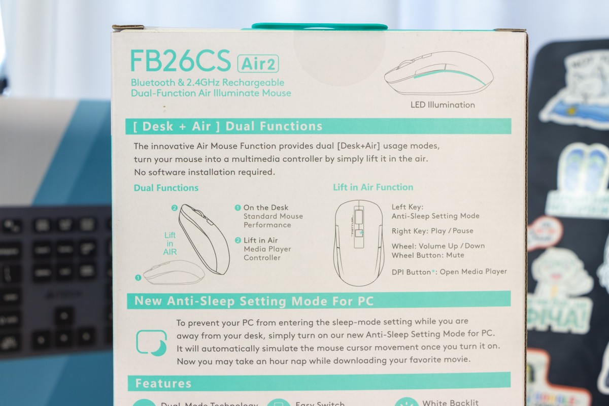 Цю функцію виробник назвав Desk+Air і вона корисна, наприклад, для управління контентом з дивану. Для повернення до звичайного режиму роботи достатньо покласти мишу на поверхню. Додатково миша отримала режим блокування сну. Підключений ПК або ноутбук автоматично імітує рух миші після увімкнення режиму сну. Висновки A4Tech Fstyler FB26CS Air2 - це надійна бездротова миша, яка приємно здивує користувачів своєю тихою роботою, тривалою автономністю, стильним дизайном і приємним на дотик пластиком. Лаконічне анімоване підсвічування додає приємної атмосфери на робочому місці і дозволяє швидко знайти мишу в темряві. Безшумні мікроперемикачі стануть перевагою не лише для користувача, а й для оточення. Пристрій підтримує різні варіанти підключення і здатен одночасно працювати з кількома пристроями. Крім того, можливість керування мультимедіа на відстані робить мишу ще більш зручною та мобільною у використанні.