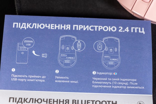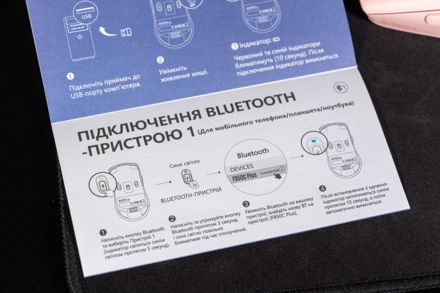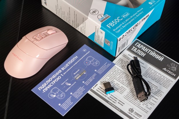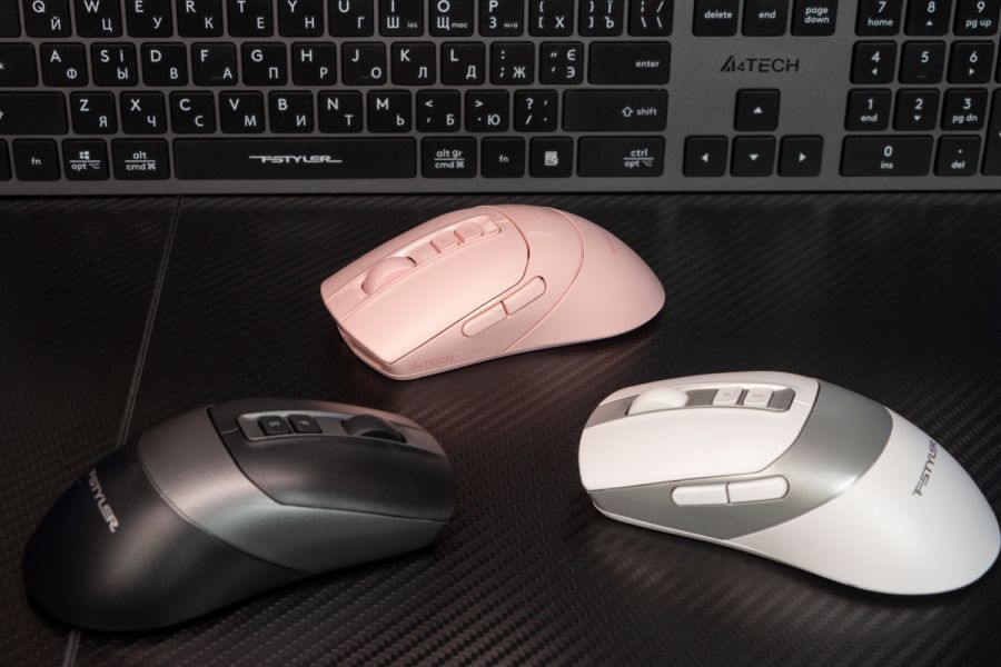 Огляд A4Tech FB50C Plus та FB50CS Plus: бездротові миші для максимально широкої аудиторіїПрийшов час замінити стару бездротову мишу? Нарешті вирішили змінити дротову на бездротовий варіант? Треба купувати мишу, яка буде підтримувати два режими бездротового підключення (по Bluetooth і на 2.4 ГГц)? Якою б не була відповідь я знаю, яку модель вам порекомендувати. Перевірив і переконався, що на цю позицію ідеально підходить A4Tech FB50C Plus або її безшумний аналог FB50CS Plus. В огляді доведу, що це універсальна миша для роботи, навчання і подорожей з сегменту доступних. Комплектація Як виглядає пакування та що знаходиться всередині коробки бачите на фото нижче. Бездротовий приймач/передавач максимально компактний, його при транспортуванні можна заховати в корпус. Кабель USB A - USB-C в комплекті має довжину 60 сантиметрів. В інструкції буде цікавим лише деталізація по процесу підключення та перемикання між пристроями. Дизайн та Корпус Корпус моделей A4Tech FB50C Plus і FB50CS Plus виконаний у стриманому, практичному дизайні, але з можливістю користувачу вибрати спокійний білий, пастельний рожевий чи універсальний чорний колір корпусу. Агресивні дизайнерські акценти в зовнішності відсутні. Хоча на рожевій миші є вставка з глянсового пластику, на чорній сіра, а на білій срібляста. Назву бренду виробника зможете знайти лише на нижній стороні корпусу, а зверху доволі скромно нанесли напис з серією - FSYLER. Базовий матеріал конструкції - матовий пластик. Він не збирає відбитки пальців і не ковзає в руці, що позитивно вплине і на довговічність корпусу і на час тривалої безперервної роботи протягом дня. Миша отримала симетричну форму, а значить однаково зручна під обидві руки. Це додам до списку переваг, адже адмін офісу може закупити партію цих пристроїв без необхідності запитувати в колег про їх потребу. Корпус дуже плавний та має єдиний різко виражений зріз попереду, який ніяк не впливає на комфорт підтримки долоні. Форма миші наскільки це можливо зменшує навантаження на зап’ястя. Завдяки компактним розмірам 63 х 120 х 36 мм миша підходить для різних типів хвату: долонного, кігтьового, пальцевого. Вага 79 грамів підібрана дуже вдало, бо з одного боку миша відчувається легкою та не перевантажує руку, а з другого боку достатньо стабільна, щоб курсор не «відлітав» далеко при дрібних рухах. Цю особливість оцінять ті, хто часто працює з таблицями і графічними програмами. Кнопки моделі FB50CS Plus мають чіткий і м’який хід, без сторонніх звуків. Коліщатко прокрутки працює плавно, з добре відчутними кроками. Додаткові пара кнопок зверху та зліва розташовані “правильно” і не заважають під час базового використання. Всього на мишці 7 кнопок. Уточню, що “клікають”, але не дуже гучно, кнопки на моделі FB50C Plus - це та, що без літери S в назві. В FB50CS Plus клік тихий. Це логічний підхід до найменування, бо S є першою літерою в слові “silence” - “тиша”. Ресурс кнопок до 5 мільйонів натискань. До їх розміру зауважень не маю. Якщо раніше не користувались мишами A4Tech FSTYLER, то позитивно оціните кнопку F з функцією подвійного кліку. На нижній частині корпусу розміщений перемикач Bluetooth режимів і перемикач живлення, який дозволяє повністю вимкнути мишу. Також передбачена ніша для бездротового адаптера. Ніжок чотири і вони забезпечують рівний та м’який рух по різних поверхнях, але краще все таки мати килимок. Бренд A4Tech їх тако