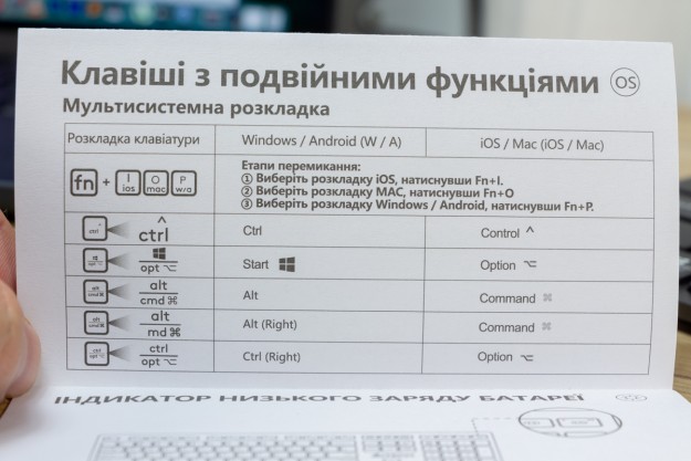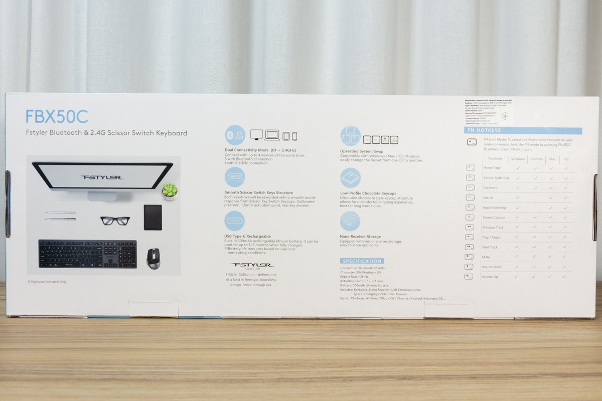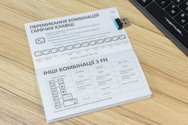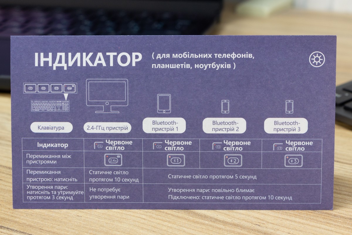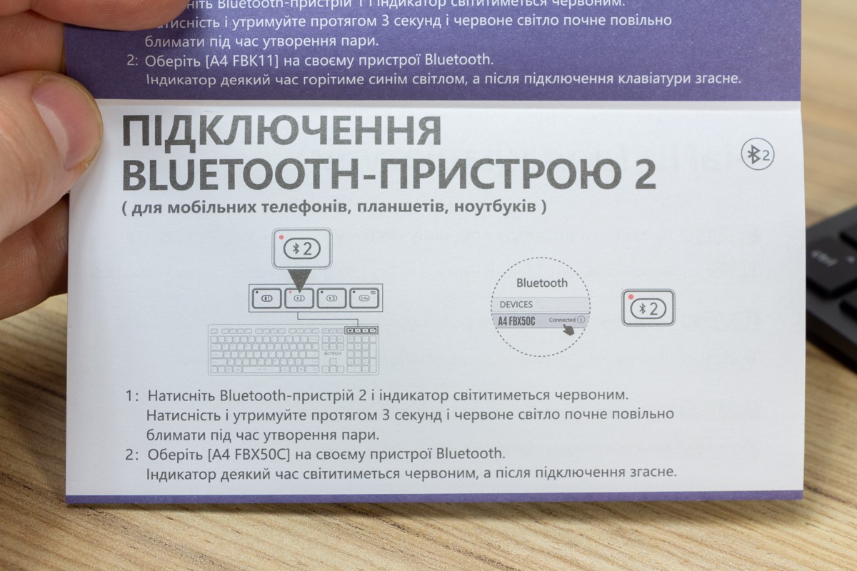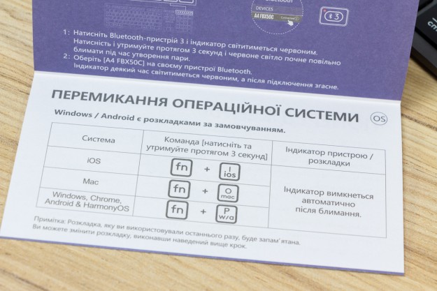 Огляд A4Tech FBX50C Fstyler: бездротова клавіатура в стилі Apple Magic KeyboardЗручна і стильна клавіатура, яку непотрібно підключати по кабелю, - це дуже актуальний аксесуар, особливо для власників компактних ноутбуків та планшетів. Ті у кого є MacBook часто купують Apple Magic Keyboard, але її прайс в понад $100 кусючий, а значить потрібна альтернатива. Низькопрофільна клавіатура з цифровим блоком A4Tech FBX50C за $30, на мою думку, ідеальний замінник, бо хоч і не з металу та виглядає стильно і не обділена корисними функціями. Її можна підключити до 4 пристроїв, заряджати через USB-C порт, а на додаток підтримується сумісність з Windows, Mac, iOS, Android. Подробиці та мої враження далі в огляді. Клавіатура A4Tech FBX50C і миша A4Tech FB26CS Air2 Комплектація В комплекті з клавіатурою отримуємо зрозумілу і детальну інструкцію українською мовою, ресивер, USB кабель-подовжувач, а також кабель USB-C - USB-А для підзарядки. Коробка інформативна і показує з якими характеристиками клавіатуру обрав покупець. Дизайн і Корпус A4Tech FBX50C - красива і витончена клавіатура, якщо ми не беремо до порівняння ігровий сегмент. Корпус зверху з темного пластику, низ чорний, клавіші також чорні. Символи на клавішах білого кольору, тож працювати з клавіатурою комфортно навіть при обмеженому освітленні. Спосіб нанесення позначок - трафаретний друк + УФ. A4Tech FBX50C - клавіатура з ножничним механізмом клавіш.Низькопрофільні клавіші зручні для набору тексту і при цьому дуже тихі. Точка спрацьовування 1.5 мм. На клавіатурі 99 клавіш. Деякі з них мають подвійні функції, що залежить від того до якої операційної системи вона підключена. Відстань між блоками клавіш і самими клавішами зручна для сліпого набору. Корпус клавіатури припіднятий на невеликий кут для зручності набору. На нижній частині передбачені чотири прогумовані ніжки, а от конструктивні елементи для зміни кута нахилу відсутні. На правому боці корпусу передбачили місце для зберігання ресивера, праворуч пусто. Попереду Type-C порт для підзарядки, перемикач увімкнення/вимкнення та кнопка перемикання в режим підключення через адаптер 2,4 ГГц. Збірка без усіляких нарікань. Матеріали підібрані, як для пристрою за $30, цілком правильні. Габарити клавіатури 126 х 420 х 20 мм. Підключення Велика перевага A4Tech FBX50C в тому, що її можна підключати до кількох пристроїв одночасно. Клавіатура підтримує з’єднання з трьома пристроями одночасно по Bluetooth і ще з одним через ресивер 2,4 ГГц. Між підключеними ноутбуками, планшетами та смартфонами можна швидко перемикатися, натискаючи одну з клавіш у верхньому правому кутку. Деталі перемикання доступно показані в інструкції. Але якщо коротко, то потрібно натиснути та утримувати 3 секунди одну з клавіш для утворення пари. А вже потім саме з'єднання відбувається майже миттєво після натискання на відповідний “номер”, а отже можна одразу продовжити роботу на іншому пристрої. Операційні системи Окрім Mac та Windows модель FBX50C можна підключати до Android та iOS. За перемикання розкладки відповідають пари клавіш Fn + I/O/P. Клавіші з подвійними функціями: Режим FN можна розблокувати або заблокувати. Список гарячих клавіш і комбінації клавіш з FN наступний: Автономність Виробник заявляє, що від повного заряду батарея на 300 мАг дасть змогу працювати до 30 днів. Я зарядив клавіатуру до повного, а це займає 2,5 години з 0 до 100%, активно два тижні користувався нею, але розрядити не зміг. Три